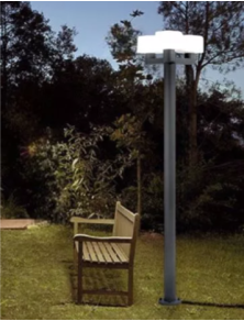 Lâmpada para iluminação ao ar livre em estilo moderno, feita de alumínio e policarbonato opalino.