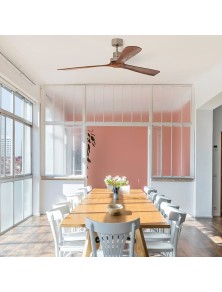 Ventilador de teto moderno com motor DC e um design atraente e vencedor, ideal para ventilar superfícies de 17,6m2. Motor de aço e lâminas de madeira. Controle remoto, incluído. 3 velocidades ajustáveis com um consumo de 24-39-82W e 70-95-135 revoluções por minuto, de acordo com a velocidade. Este ventilador tem a função de inverno de verão, então também pode ser usado na estação de inverno, melhorando a eficácia do sistema de aquecimento. Adequado para teto inclinado.