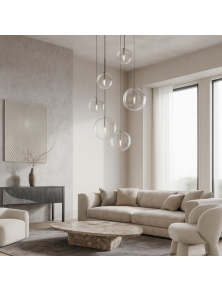 Os difusores, com transparência delicada e reflexos subtis, conferem leveza e sofisticação, adaptando-se tanto a ambientes clássicos como contemporâneos. A luz difusa e envolvente cria uma atmosfera acolhedora e elegante, ideal para salas de jantar, salas de estar ou espaços de receção.